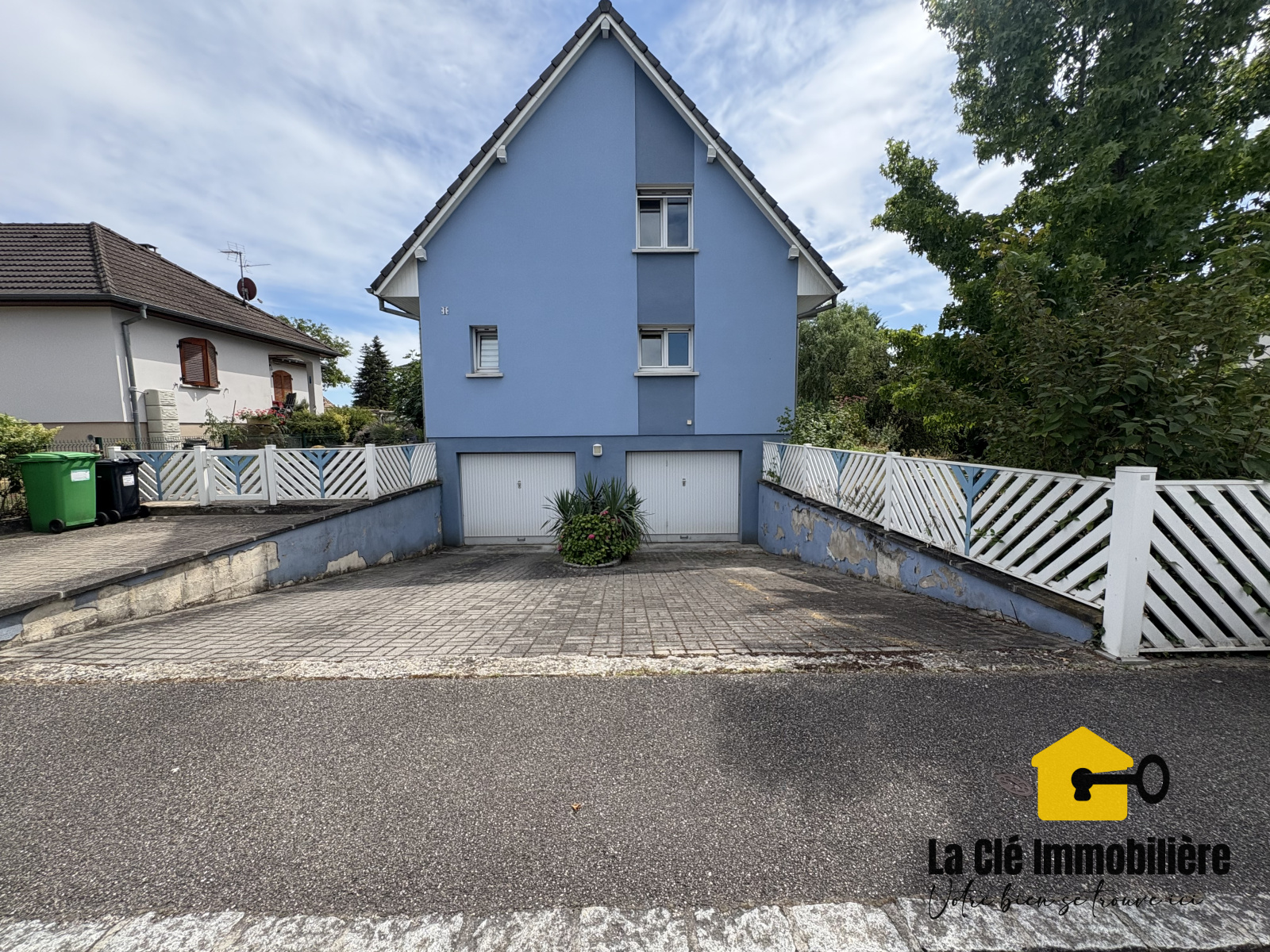 Le sous-sol dispose d'un double garage d'environ 55m² avec 2 portes dont une est automatique, d'une buanderie équipée des branchements pour la machine à laver ainsi q'un évier et une armoire murale, et également une pièce pouvant servir d'atelier. Le jardin est entièrement clôt et arboré.