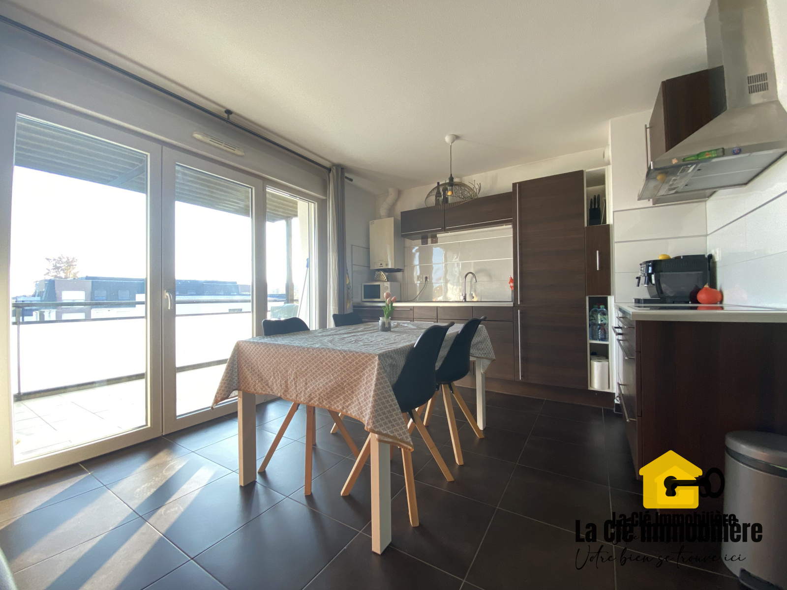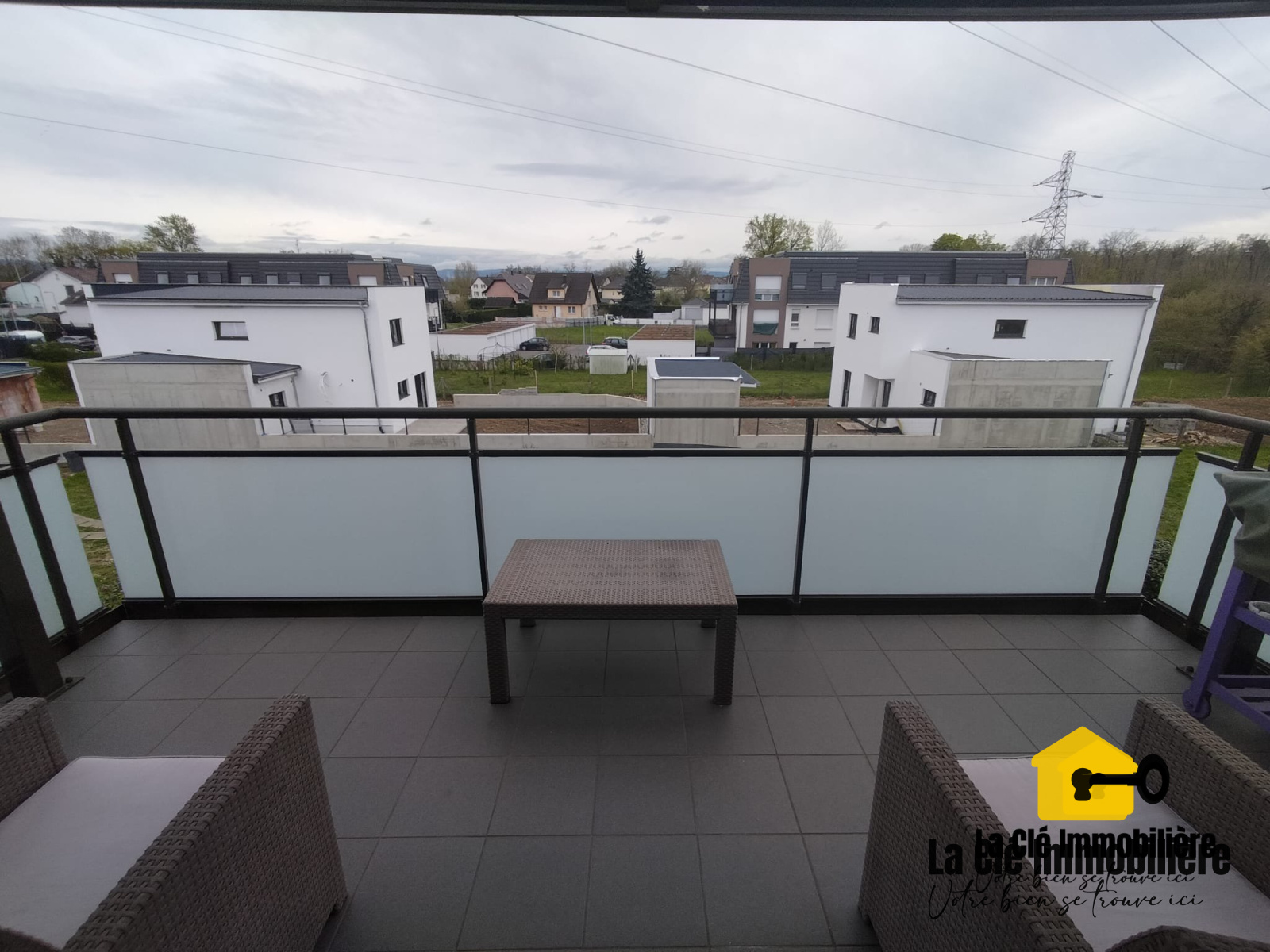 Kembs (68680)Dans la charmante commune de KEMBS, à proximité du canal de Huningue et du port de plaisance; se trouve ce très bel appartement au sein d'une petite copropriété au coeur d'un quartier résidentiel de 2013, l'appartemment se situe au dernier étage.