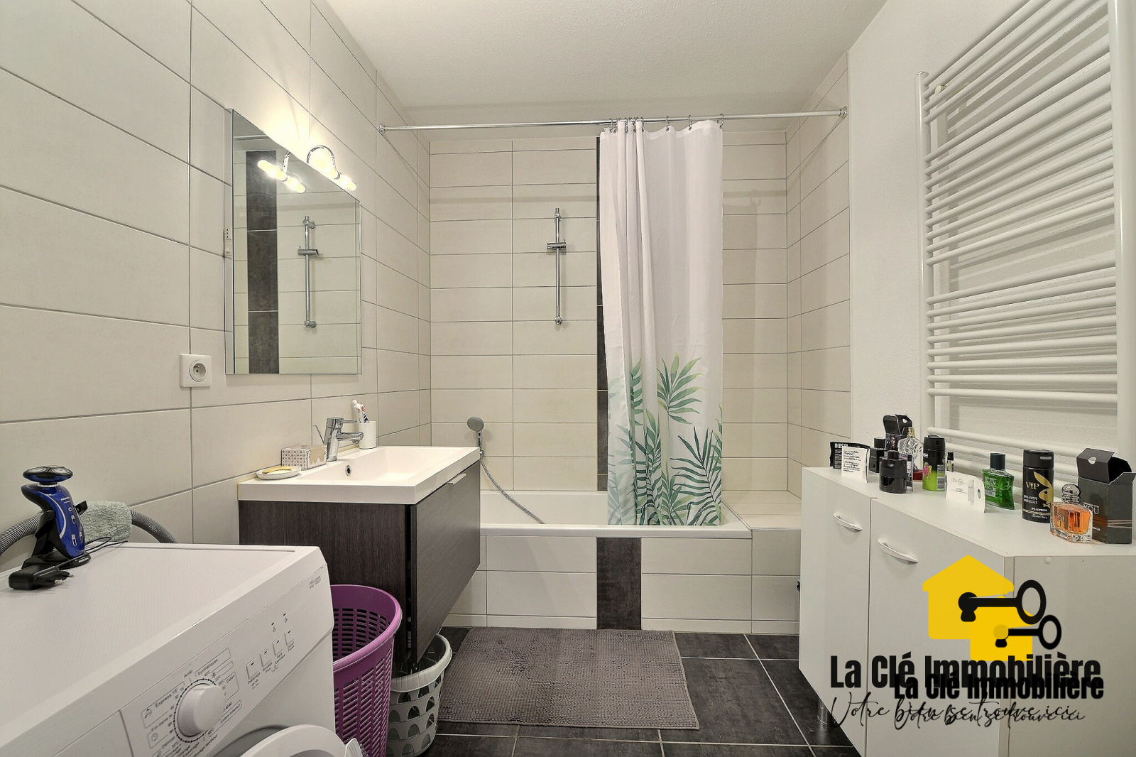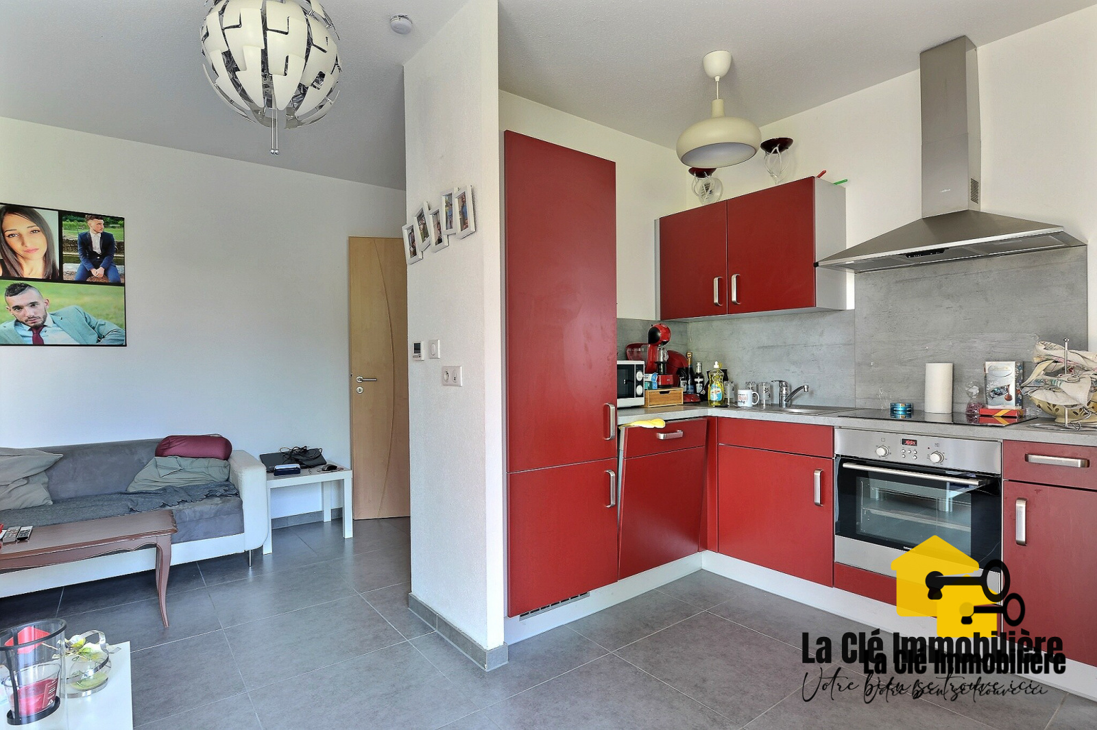 L'appartement lumineux situé en rez de jardin est composé d'une cuisine ouverte donnant sur une grande pièce à vivre, une chambre et d'une salle de bains avec baignoire et WC. Le couloir est doté d'une armoire murale permettant d'avoir un vaste espace de rangement.